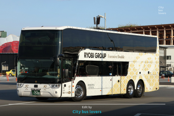 C駐車場発着路線の運用に入る両備バスの車両。基本的に通常の観光型車両が使用されているが両備担当便のみまれにスカニアの二階建てバスが登板する場合がある。