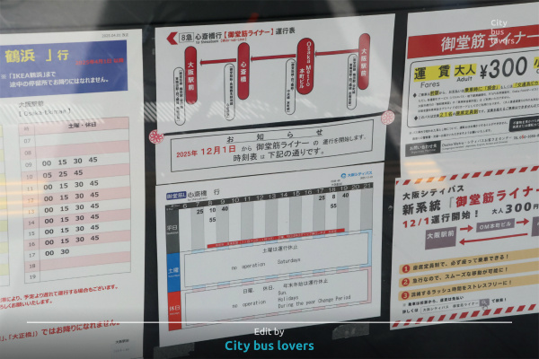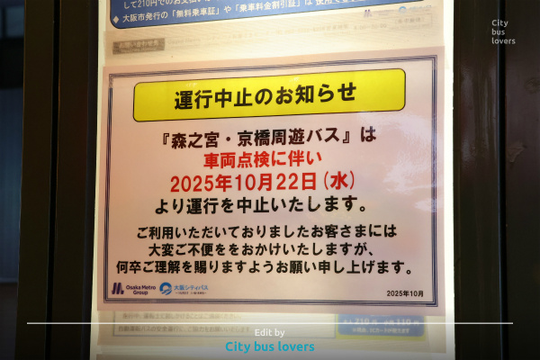 トップページ » トピックス » 2025年10月〜12月のトピックス (クリックするとその月のトピックスにジャンプします) 2025年12月 2025年11月 2025年10月 2025年12月のトピックス 2025.12.01特報 2025年12月1日ダイヤ変更 2025年11月のトピックス 2025.11.30 おおきにアリーナ舞洲発着の臨時直行バスが正経路に復帰 2025.11.30 「万博鉄道まつり」にシティバスが初出展 2025.11.28独自 港営業所の臨時車庫が閉鎖 2025.11.27 南河内新モビリティプロジェクトのロゴマークが決定 2025.11.26独自 IKEA行バスの車内案内表示が一部変更に 2025.11.24 バス発車時の注意喚起放送が3年連続で変更を確認 2025.11.20 メトロのオンデマンドバス運行エリアが18地区に拡大 2025.11.20 OMタクシー東成営業所と同敷地内に今里営業所を新設 2025.11.17 メトロフェスティバルで電気バスを使用した構内間移動バスを運行 2025.11.16 サイネージ付バス停標柱の本格設置を開始 2025.11.16 SVリーグ・サントリーの試合開催に伴う臨時バスを運行 2025.11.13独自 大阪・関西万博 閉幕までの来場者輸送実績推計値が公表 2025.11.12 「御堂筋ランウェイ2025」開催に伴う運休・迂回運行を実施 2025.11.12 上町台地周辺の観光名所を紹介するラッピングバスが運行開始 2025.11.11 メトログループ2025年度第2四半期決算 万博特需でシティバスは過去最高益を更新 2025.11.07 IKEA行バス・一般路線でタッチ決済サービスが開始 2025.11.04 ハロウィーンに関連した装飾バス運行・停留所休止を実施 2025.11.04 自動運転実証運行路線「森之宮・京橋周遊バス」 実験中止で運行も打ち切り 2025年10月のトピックス 2025.10.31 南河内地区自動運転バス実証実験の開始が延期に 2025.10.28 国土交通省がEVモーターズ・ジャパンに立入検査 2025.10.27 万博シャトルバス発着拠点の解体工事開始を確認 2025.10.27 自動運転実証運行路線2025年10月20日ダイヤ変更 2025.10.27 「第37回なにわ淀川花火大会」に伴う運休・経路変更を実施 2025.10.27 「OSAKA Fantast!c SPORTS MATCH」に伴う臨時直行バスを運行 2025.10.27独自 運賃箱の万博ステッカー掲出終了を確認 2025.10.19 デジタル版2社共通1日乗車券が発売再開 2025.10.15特報 大阪・関西万博閉幕 シティバスの来場者輸送もすべて終了 2025.10.14特報 大阪・関西万博関連輸送 開催最終日に合わせた特別企画を展開 2025.10.12特報 舞洲P&R万博シャトルバス 運行開始後の様子 2025.10.11独自 会場内外周バス「e Mover(イームーバー)」の停留所で閉幕カウントダウンが開始 2025.10.11独自 万博最終週に港・万博駐機場両営業所間での車両転属が発生 2025.10.10 万博会場フューチャーライフビレッジ内で南河内地区の自動運転バス実証実験を紹介 2025.10.10 大阪エヴェッサ応援バス 2025-2026シーズンの運行を開始 2025.10.10特報 会場内外周バス「e Mover(イームーバー)」 会期末を控え停留所周辺に変化 2025.10.08 舞洲P&R自動運転バス 9月30日ダイヤ変更 2025.10.07 天皇皇后両陛下万博会場行幸啓に伴う運行計画変更を再び実施 2025.10.07独自 一般路線車内の大阪・関西万博に関連した案内・啓発広告が掲載終了 2025.10.06 自動運転実証運行路線2025年9月20日ダイヤ変更 2025.10.06 舞洲P&R自動運転バス 9月19日ダイヤ変更 2025.10.06 舞洲CD駐車場P&Rシャトルバス シティバス非関与で運行開始 2025.10.06 万博会場内外周バス「e Mover(イームーバー)」東西輸送便の前面ボード更新を確認 2025.10.03特報 万博会場内 カーボンリサイクルファクトリー送迎バスを運行中 2025.10.02 大阪・関西万博連動の御堂筋サテライトプラン第3弾開催に伴う計画運休などを実施 2025.10.02独自 桜島駅万博シャトルバス 急停車注意の案内放送をさらに追加 2025.10.02 大阪・関西万博会場内のいすゞ・エルガEV休憩所に新車両が登場 « Back