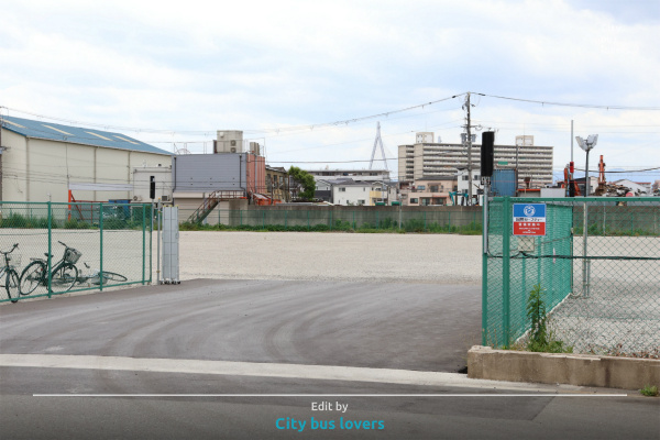 大阪シティバス・OMタクシー港営業所の敷地外に同営業所の臨時車庫が開設されていることを6月下旬までに確認した。大阪・関西万博輸送に関連した車庫用地拡張で万博閉幕までの使用とみられる。