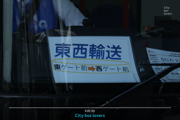今回のダイヤ変更は西ゲートの入場券を所持した来場者限定で、8時30分から11時30分までの時間帯を対象にイームーバーによる東ゲート前→西ゲート前間の路線「東西輸送」を新設。4分〜5分間隔で西ゲート前までの区間を3分で結び、大阪シティバス・万博駐機場営業所配属の大型車が初めて営業運転に就いている。