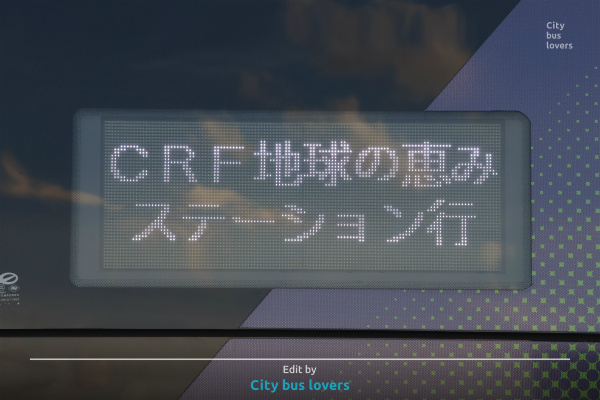 CRF見学ツアーの側面行先表示。写真は地球の恵みステーションのもので、見学する各行先ごとに独自の表示がそれぞれ用意されている。