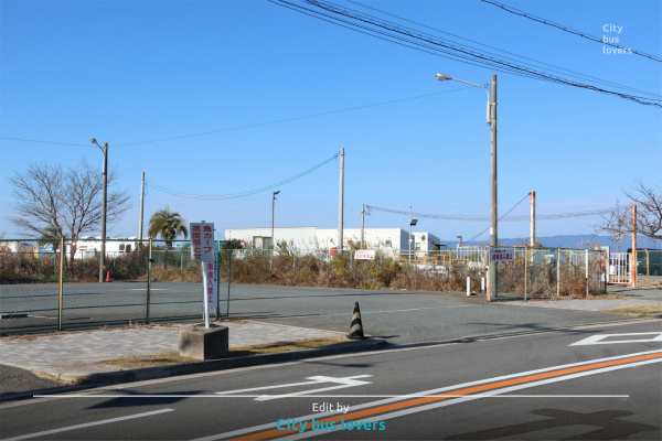 迂回運行時の仮停留所が撤去された舞洲転回地。今回の正経路復帰を機に競合する北港バスへの同転回地貸出を解消し、シティバス単独使用に移行した。
